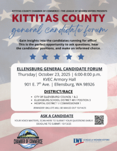 Kittitas County Chamber of Commerce and League of Women Voters of Kittitas County will host a Candidate Forum for candidates in the General Election in November.