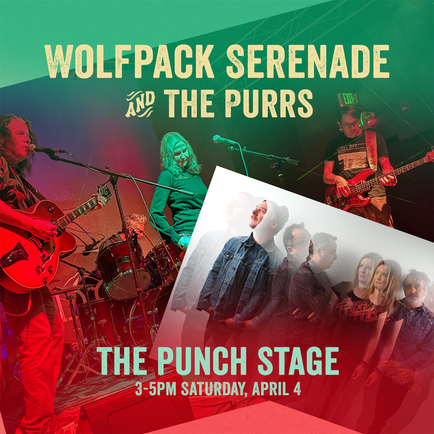 Open 12-5pm Saturday, April 4 with “Wolfpack Serenade” playing relaxed indie and “The Purrs” playing psych rock on the Punch Stage 3-5pm.