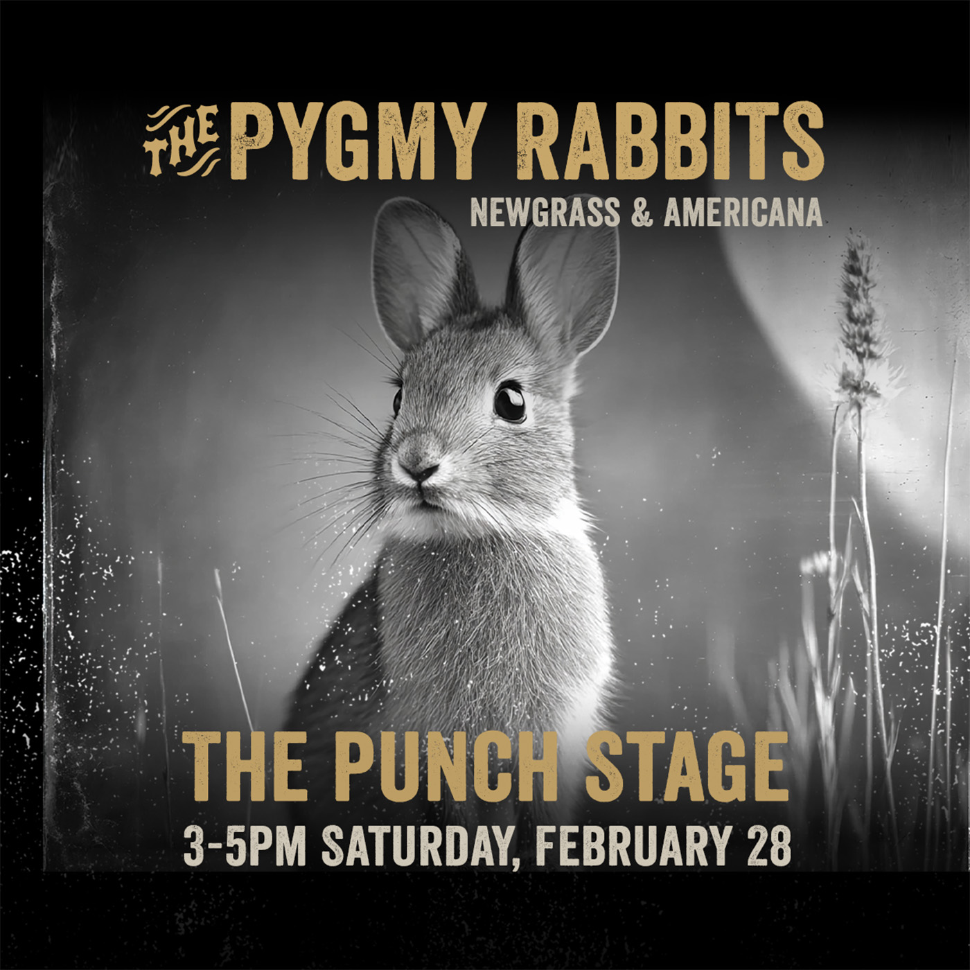 Open 12-5pm Saturday, February 28 with “The Pygmy Rabbits” playing Newgrass and Americana music on the Punch Stage 3-5pm.