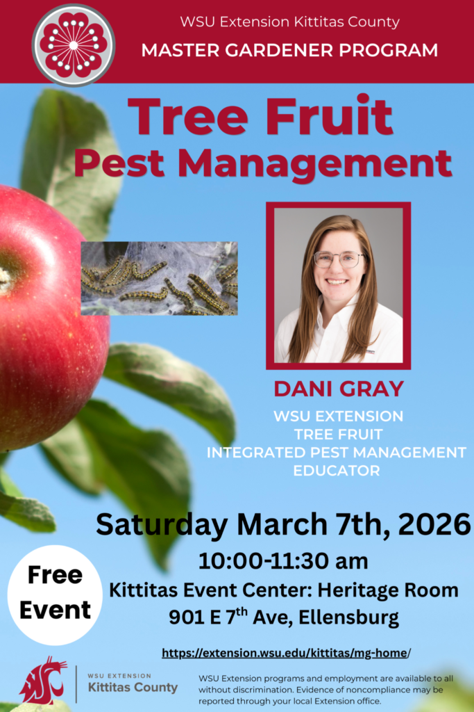 Do you want to learn more about gardening, meet new people and make a difference in the community?  Becoming a WSU Extension Master Gardener may be just right for you. Come learn more at our Meet & Greet on Tuesday, August 12 from 12:00 – 1:00 at the Extension office located in the old Armory building, 901 E 7th Ave, Ellensburg, WA.