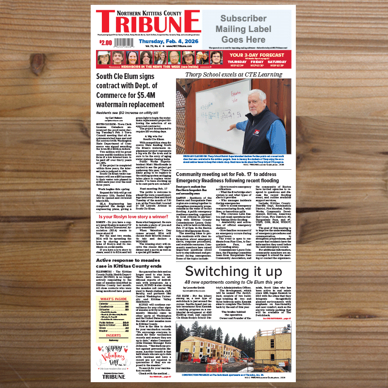 Looking for a specific issue, article, photo or other content? Single copies of the last 12 months issues available for purchase, mailed to anywhere in the 50 United States. To save delivery costs, if you're in Cle Elum, stop by our office.